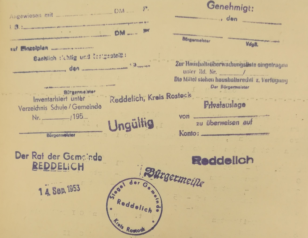 Vorheriges Bild Nächstes Bild 1953-09-Stempelprobe-Gemeinde-0 Muster der Stempelammlung der Gemeinde 1953/54 [07]