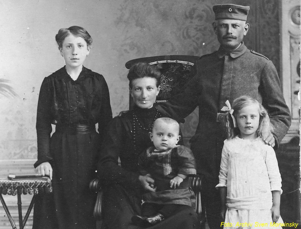Vorheriges Bild Nächstes Bild Büdnerei-16-04 Bild 5: Carl Vanheiden mit Ehefrau Anna und Grete, Paul, und Henny in einer Aufnahme von 1914 [05]